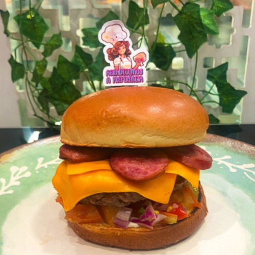 PÃO BRIOCHE, HAMBÚRGUER ARTESANAL, CALABRESA EM FATIAS, MAIONESE ESPECIAL, TOMATE, CHEDDAR, CEBOLA E ALFACE.