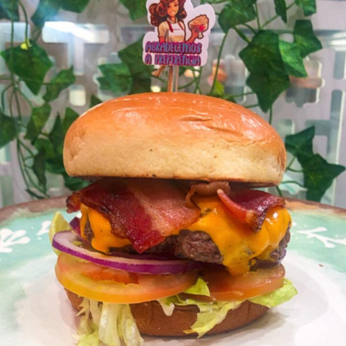 pão de brioche, Hambúrguer artesanal, bacon, maionese especial, tomate, cheddar, cebola e alface.